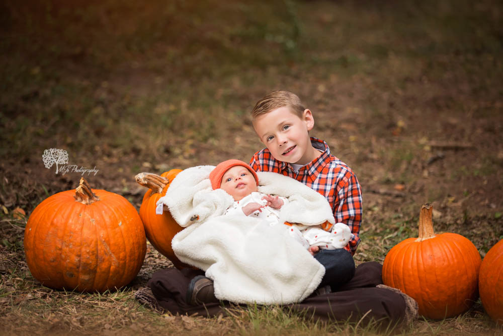 Look how adorable this sibling picture is! The pumpkin hat is perfect for fall.