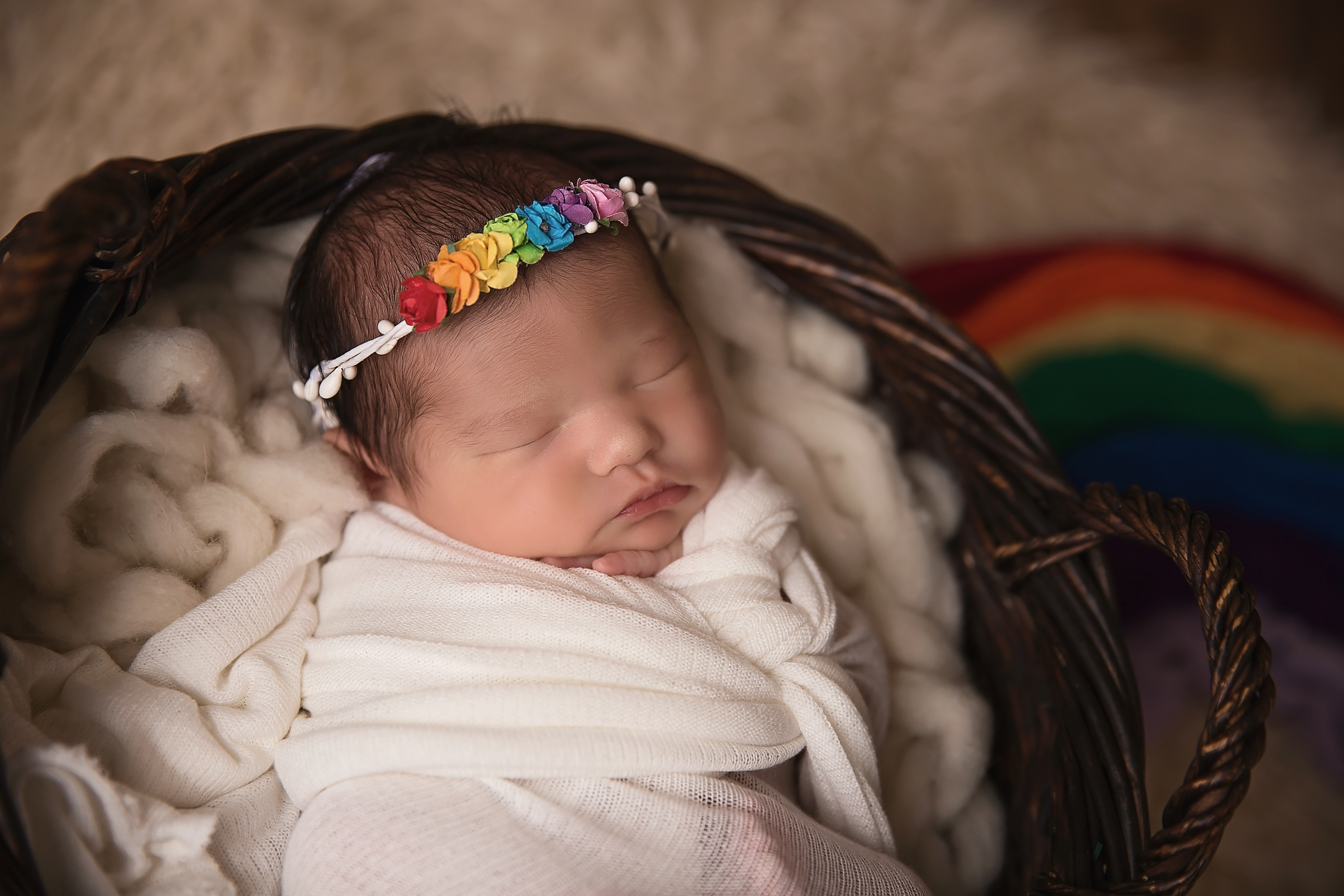 Rainbow head piece sold by https://www.etsy.com/shop/LuckyCrickets?ref=shop_sugg for the Rainbow Baby Newborn Session.