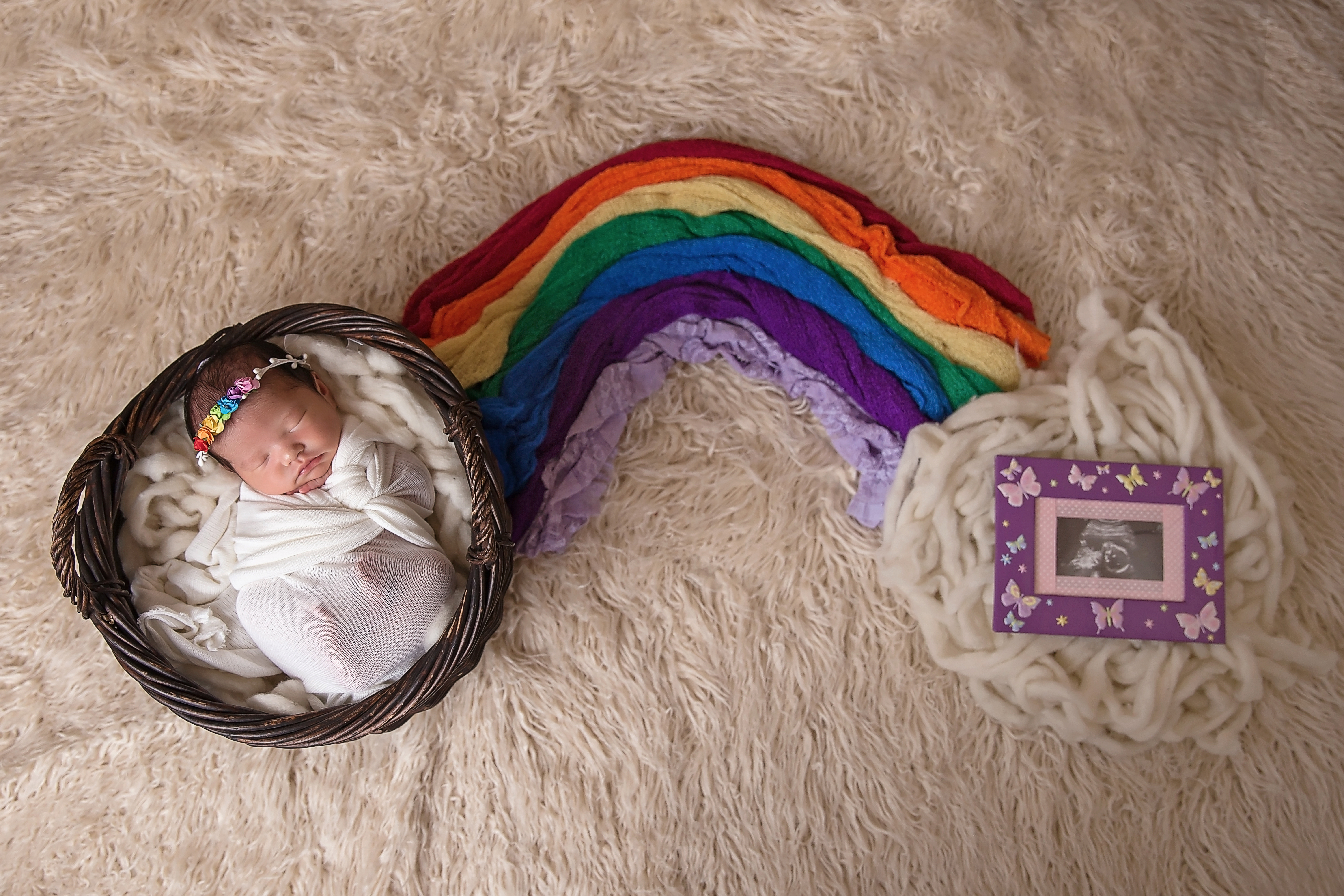 When Nari was born they wanted a rainbow themed setup for her newborn session. We wanted to include Aaliyah’s ultrasound photo in it to make it extra special.
