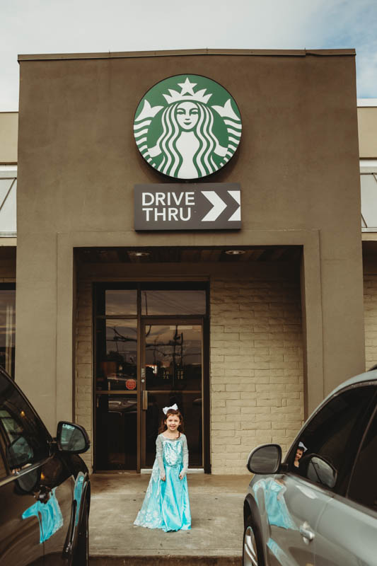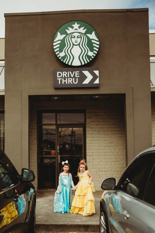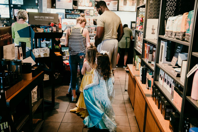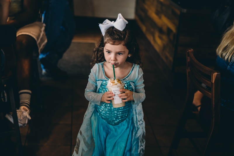 We arrived at Starbucks donned in our princess gear with our best friend as Elsa.