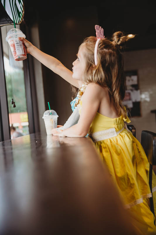 When your little girl is turning the big FIVE and just wants to be a Disney princess at Starbucks…that is exactly what you do.